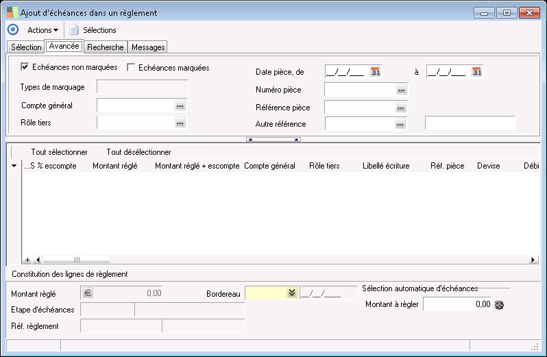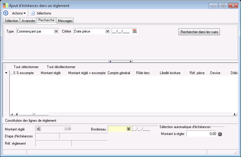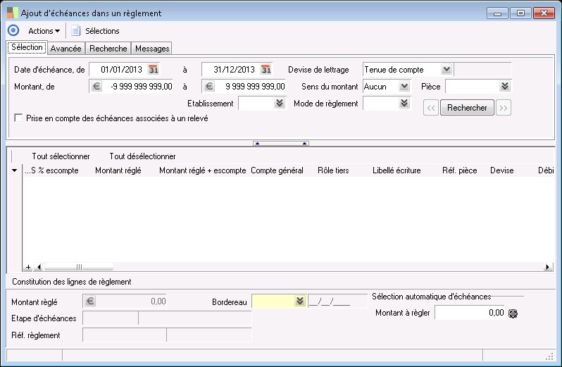 Remarque : quand il s'agit d'un règlement, la date d'échéance est par défaut ègale à la date de référence.Elle est biensûr modifiable par l'utilisateur.