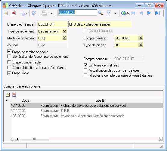 Il s'agit du compte général de l'étape. C'est ce compte qui sera utilisé pour comptabiliser l'évolution des échéances à cette étape.