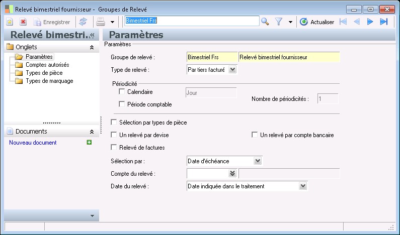 On peut définir des relevés soit par tiers facturés, soit par tiers payeur; et pour chaque tiers on le rattache à un groupe de relevé.