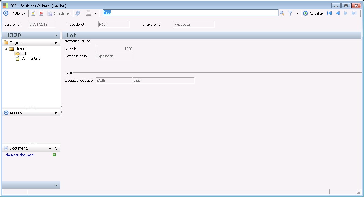 - Exploitation : seule cette nature peut être affectée aux pièces saisies dans un lot de catégorie Exploitation.