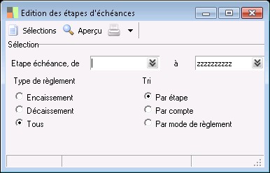 Toutes : permet d'éditer les étapes d'échéances de type Encaissement et Décaissement.