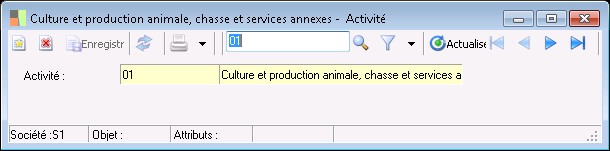 La fenêtre de saisie des activités permet d'enregistrer le code et la désignation de l'activité.