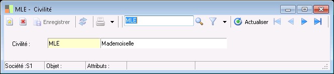 Cette fonction permet de gérer le détail des désignations des civilités (Monsieur, Madame, Mademoiselle, etc.) et leurs abréviations.