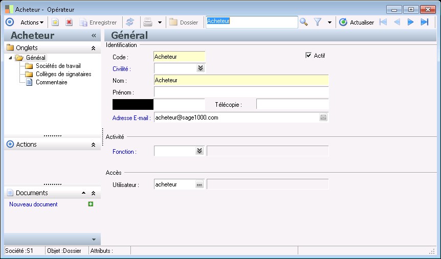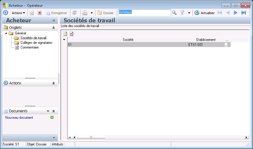 Cette fonction permet, à partir de leur liste, d'enregistrer la fiche des personnels des établissements de la société. La liste des personnels est appelée par la fonction Paramètres / Paramètres Généraux / Société / Opérateurs / Opérateurs .