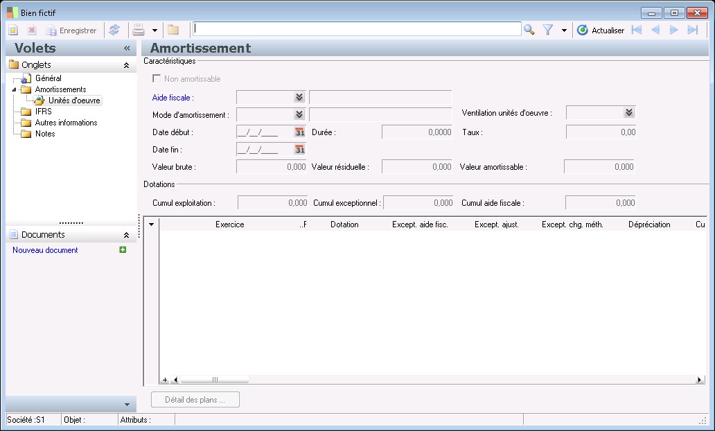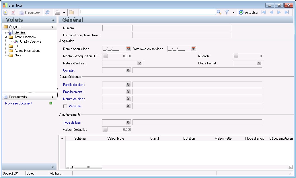 Cette donnée est obligatoire à la validation de la fiche de bien. Le type de bien détermine les schémas d'amortissements de la fiche de bien.