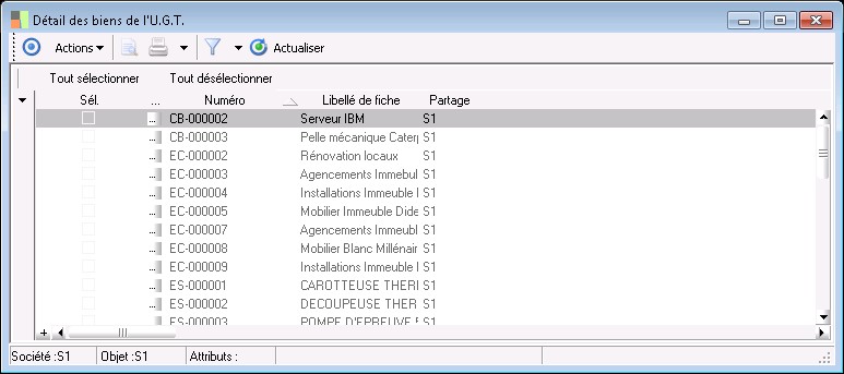 Dans cette fenêtre, il est possible de visualiser les biens faisant partie de l'UGT.