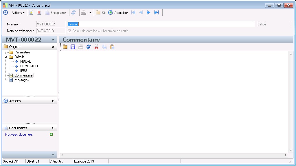 Cette zone permet de renseigner la date d'acquisition de l'immobilisation. Si l'option "Justification du montant d'acquisition" des paramètres immobilisations est cochée, cette zone n'est pas saisissable. Cette information n'est plus modifiable lorsque le bien est valide.