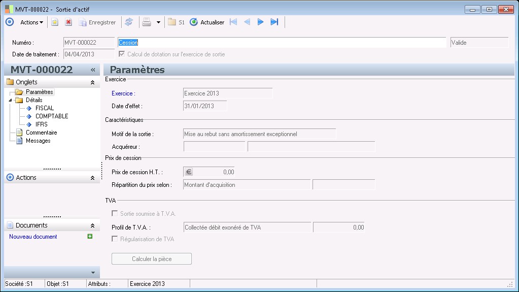 Il s'agit ici d'indiquer le montant d'acquisition hors taxes figurant sur la facture d'achat. Si l'option "Justification du montant d'acquisition" des paramètres immobilisations est cochée, ce montant n'est pas saisissable et totalise les montants H.T. des origines de bien. Cette information n'est plus saisissable lorsque le bien est valide mais pourra être modifiée par certains traitements.