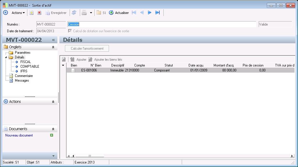 Numéro de la fiche de bien. Il est incrémenté automatiquement d'après le compteur défini au niveau des paramètres immobilisations.