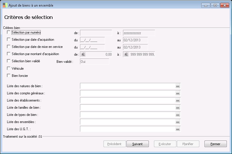 Ce paramètre permet de faire une sélection par numéro de bien (si la case est cochée).