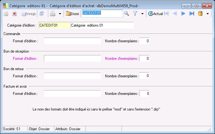 Cette zone mentionne le format d'édition utilisé pour les bons de livraison/réception.