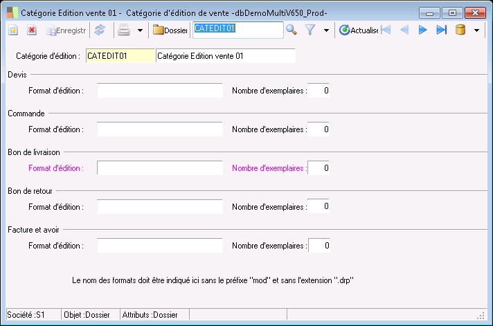 Cette zone mentionne le format d'édition utilisé pour les bons de livraison/réception.