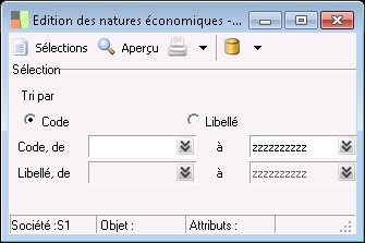 Le tri par libellé édite les natures économiques dans l'ordre croissant du libellé.