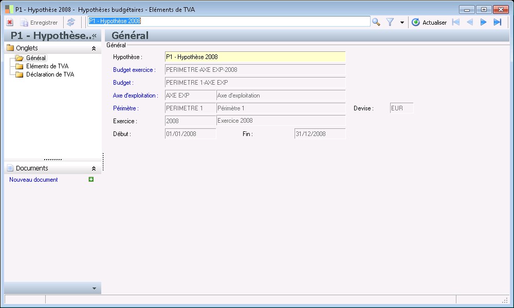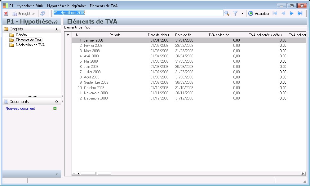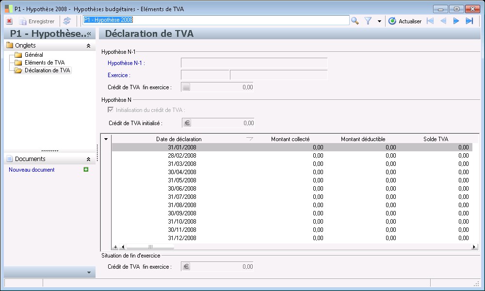 L'option « Initialisation du crédit de TVA » permet de rendre actif la zone « Crédit de TVA ». Si l'option n'est pas cochée, la sélection d'une hypothèse N-1 est obligatoire, en effet le crédit de TVA sera calculé en fonction des éléments de l'hypothèse N-1. Si l'option est cochée, le crédit de TVA sera utilisé pour le calcul de la TVA.