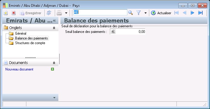 Permet de renseigner le montant de seuil pour la déclaration à la balance des paiements.