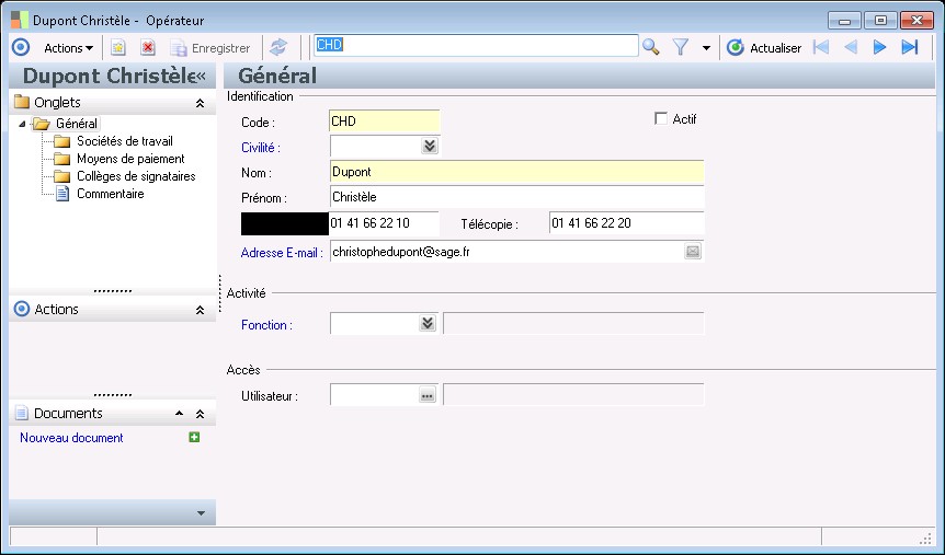 Cette zone permet de renseigner le numéro de télécopie de la personne.