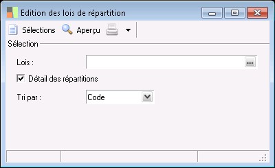 Permet de sélectionner un ordre de présentation pour les lois (code ou libellé). Par défaut, les lois de répartition sont triées par code.