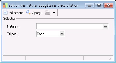 Cet écran vous permet d'éditer la liste des natures budgétaires d'exploitation, triées par code ou par libellé.