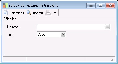 Cet écran vous permet d'éditer la liste des natures budgétaires de trésorerie, triées par code ou par libellé.