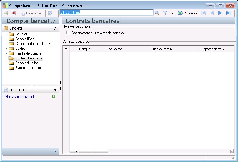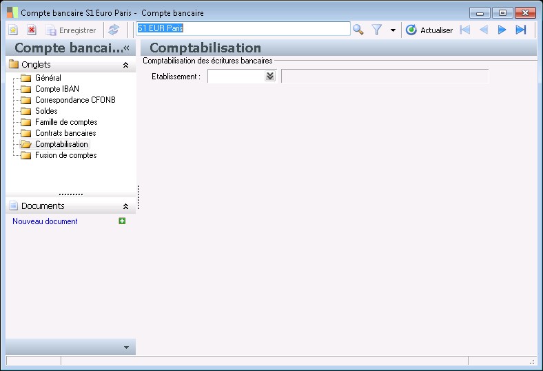 Un compte bancaire tiers est obligatoirement rattaché à un tiers afin d'identifier les différents comptes bancaires tiers rattachés à un même tiers.