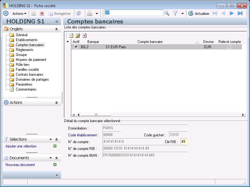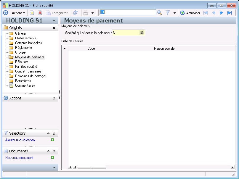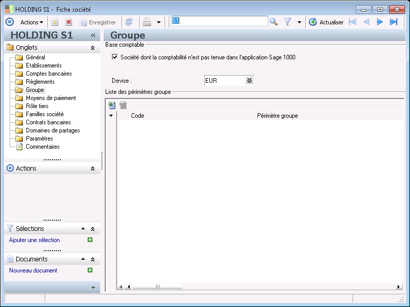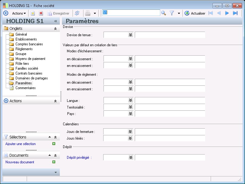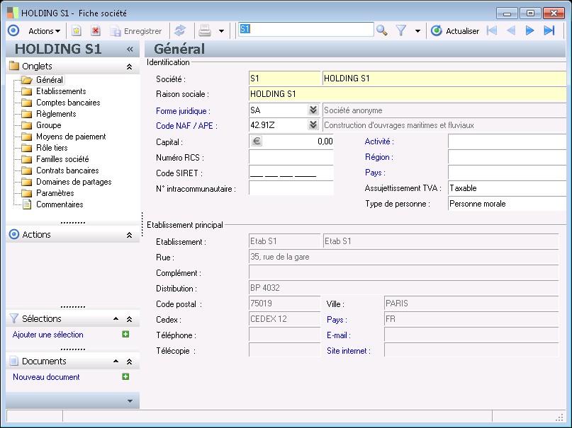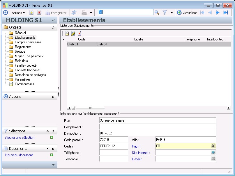 Cette zone permet de renseigner le pays d'après les informations contenues dans la table des pays. Le pays proposé par défaut correspond à celui de l'établissement indiqué dans la fiche société.