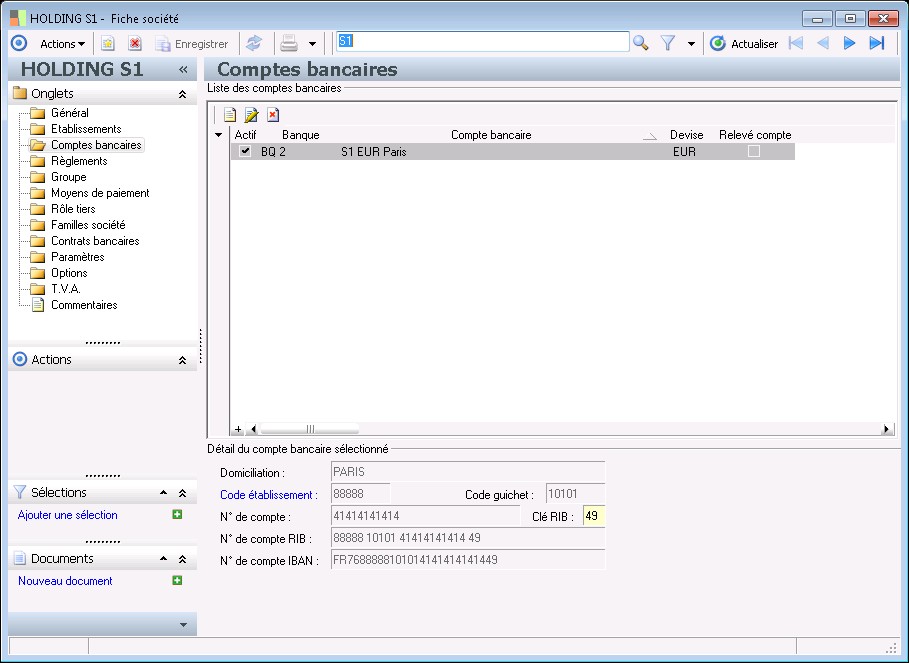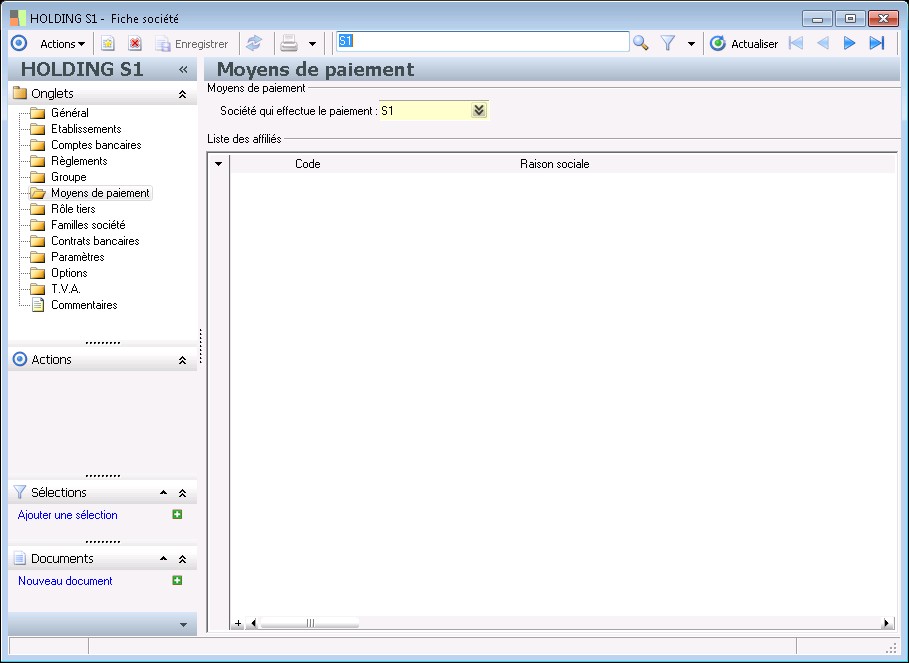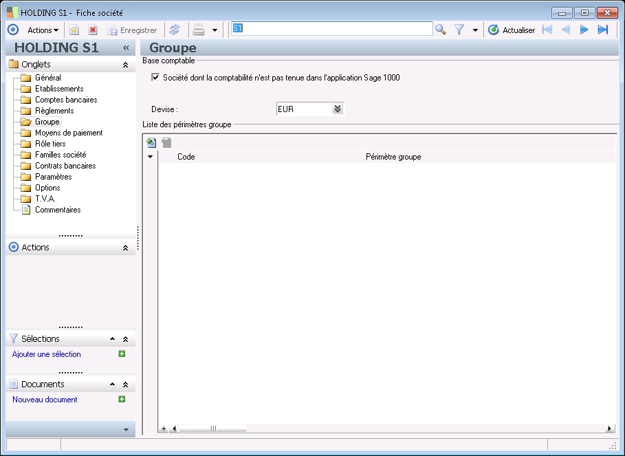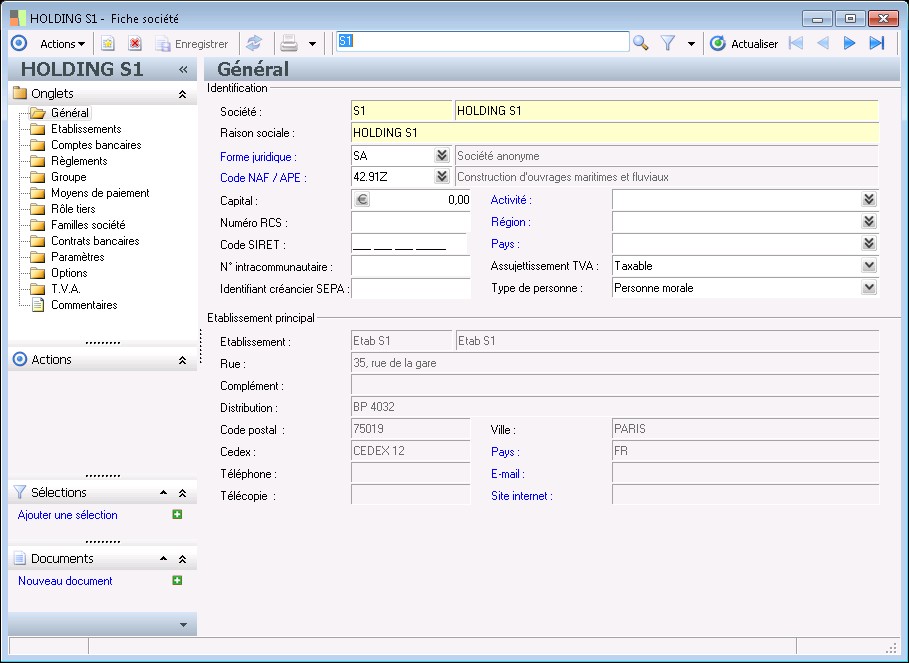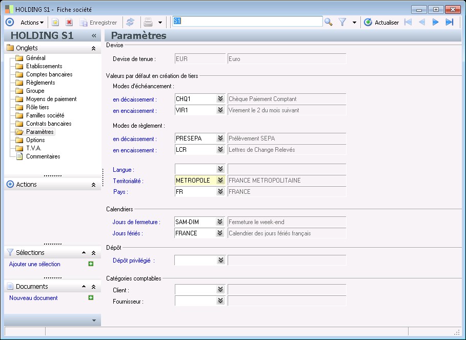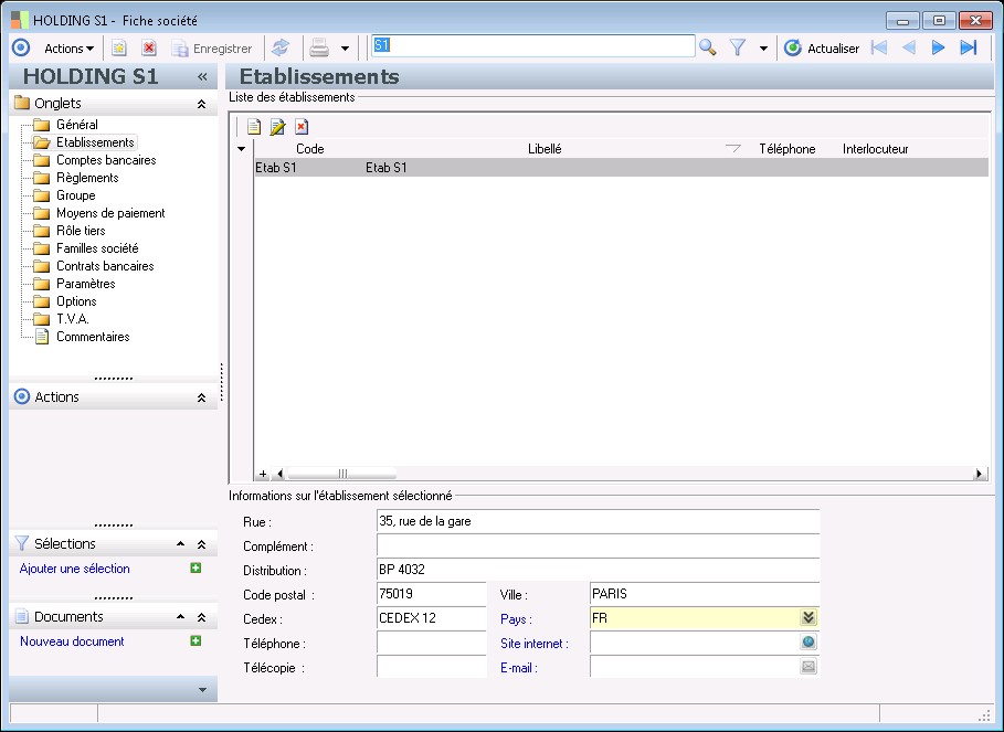 Cette zone permet de renseigner le pays d'après les informations contenues dans la table des pays. Le pays proposé par défaut correspond à celui de l'établissement indiqué dans la fiche société.