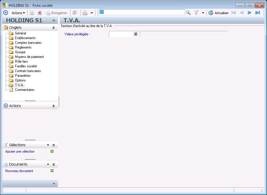 Cette information précise à quel mode de TVA est assujetti le tiers : Taxable, Non taxable, Intracommunautaire, Export, Fictive.