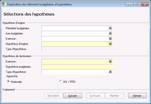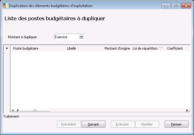 Si l'option est décochée, seuls les montants budgétés de l'hypothèse d'origine sont dupliqués. Liste des postes budgétaires à dupliquer Le second écran affiche les postes budgétaires de l'hypothèse d'origine. Vous allez renseigner dans cet écran les conditions de la duplication.