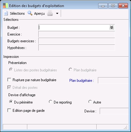 Permet de sélectionner un budget exercice.