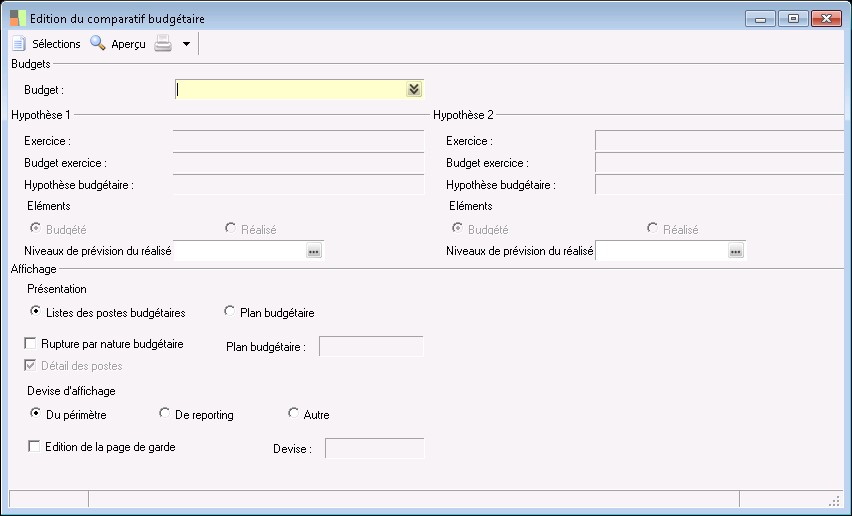 Permet de définir quels éléments seront affichés pour l'hypothèse 2 : le budgété ou le réalisé.