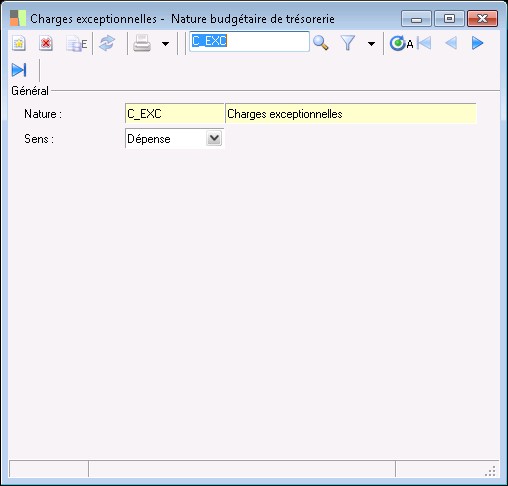 Une nature budgétaire de trésorerie est porteuse d'un sens : recette ou trésorerie. Une fois définie, elle peut être associée à un poste de trésorerie.