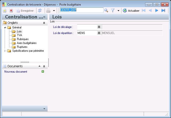 Ces lois peuvent également être affectées sur l'écran de création des hypothèses budgétaires d'exploitation. |