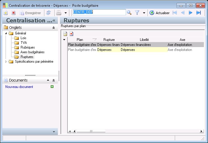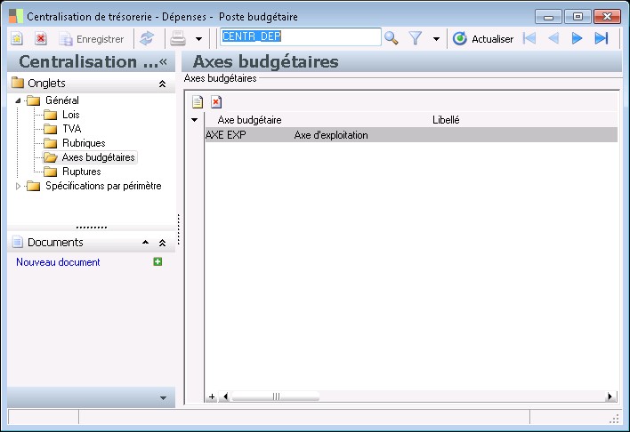Ce paramétrage peut également être effectué dans l'écran de création de création des axes d'exploitation. |