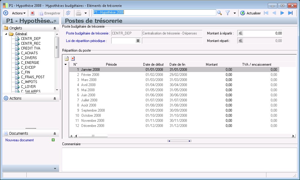 Le montant est le montant budgété de la période pour le poste budgétaire.