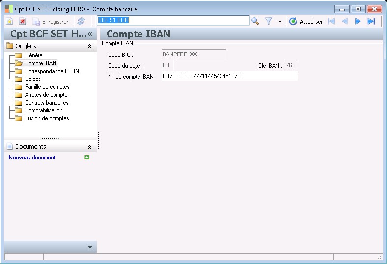Affiche le compte bancaire avec la structure normalisée IBAN.