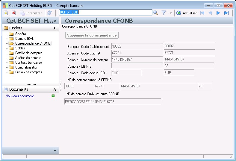 La clé RIB française permet de vérifier que le numéro de compte a été correctement saisi. Ce contrôle peut être désactivé dans la fiche agence bancaire.