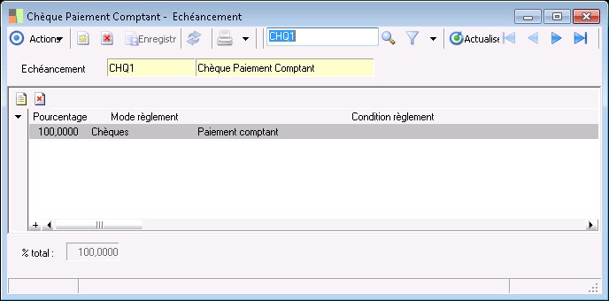 Le pourcentage permet d'éclater en une ou plusieurs échéances le règlement d'une facture.