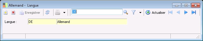 La fenêtre de saisie des langues permet d'enregistrer le code ainsi que la désignation de la langue.