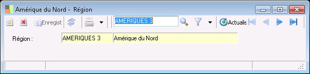 La fenêtre de saisie des régions permet d'enregistrer le code ainsi que la désignation des régions mentionnées dans les fiches tiers.