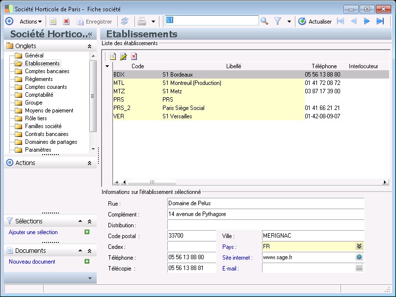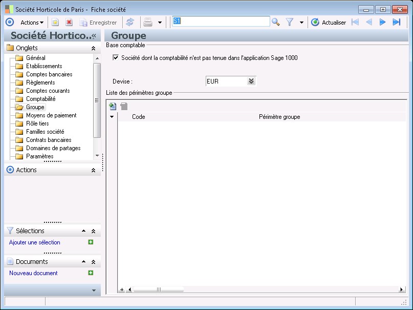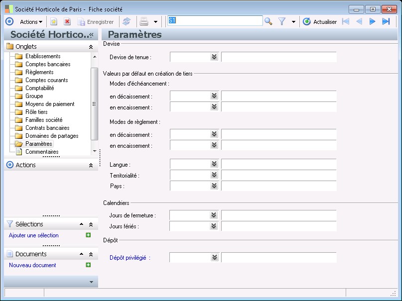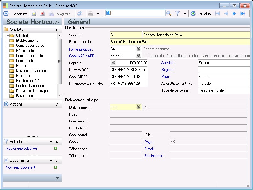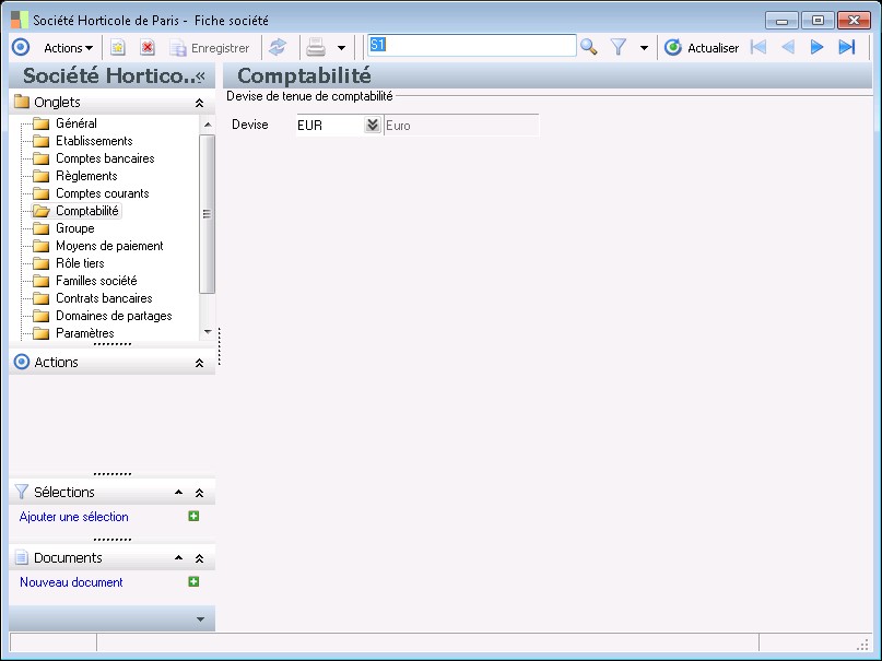 Cette zone permet de renseigner le pays d'après les informations contenues dans la table des pays. Le pays proposé par défaut correspond à celui de l'établissement indiqué dans la fiche société.