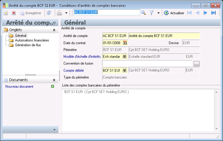 Le périmètre représente une liste d'un ou plusieurs comptes bancaires constituée à partir des comptes d'une famille de comptes, d'une famille de banques, d'un groupe de sociétés, d'une société, ou d'une banque.
