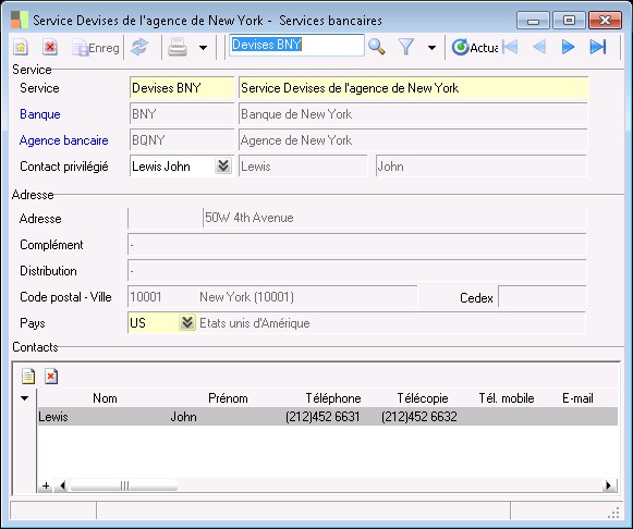 Cette zone permet de renseigner le pays d'après les informations contenues dans la table des pays. Le pays proposé par défaut correspond à celui de l'établissement indiqué dans la fiche société.