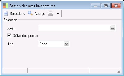 Cet écran vous permet d'éditer la liste des axes budgétaires, avec ou sans le détail des postes budgétaires les constituant.