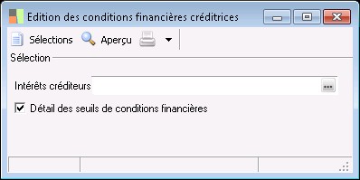 Edition des conditions financières créditrices