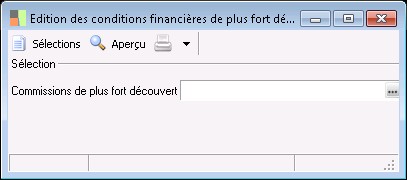 Cet écran permet d'éditer la liste des conditions financières de commission du plus fort découvert.
