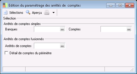 Cette fonction permet d'éditer le récapitulatif du paramétrage des arrêtés de comptes :