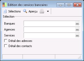 Cet écran permet d'éditer la liste des services bancaires.