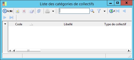 (Sage FRP 1000 Suite Financière) Menu Comptabilité Groupe > Paramètres > Tiers > Liste des catégories de collectifs