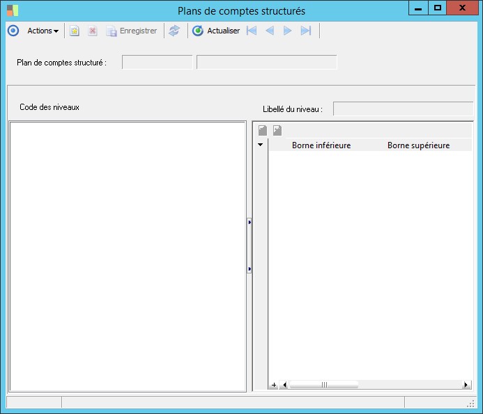 - Renseigner le code et le libellé du nouveau plan de compte dans la zone Plan de comptes structuré , située en haut de l'écran.