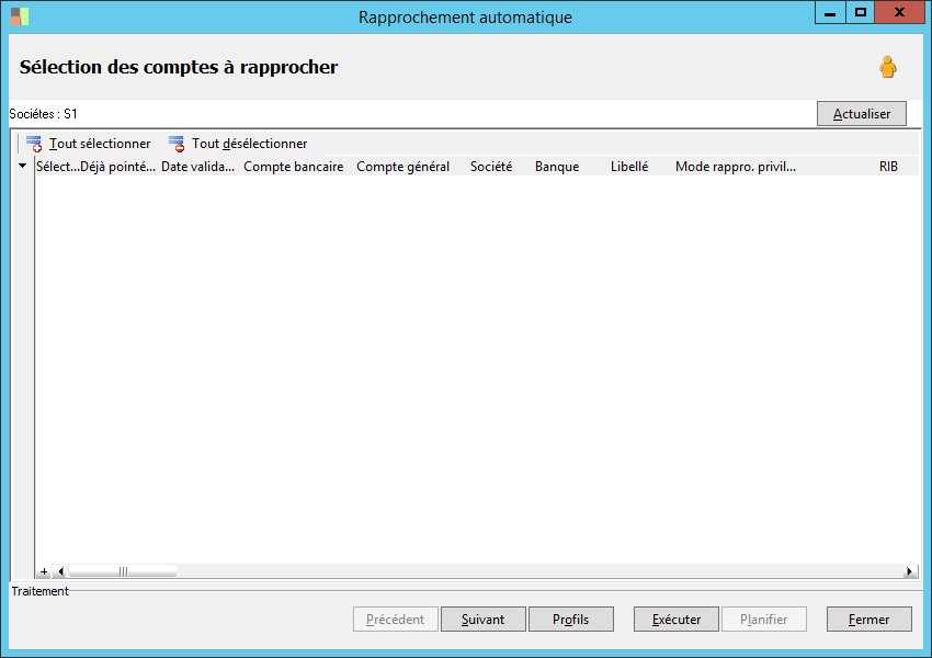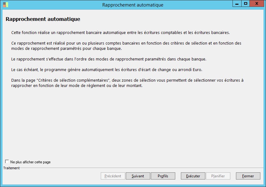(Sage FRP 1000 Suite Financière) Menu Comptabilité > Générale > Rapprochement > Rapprochement automatique